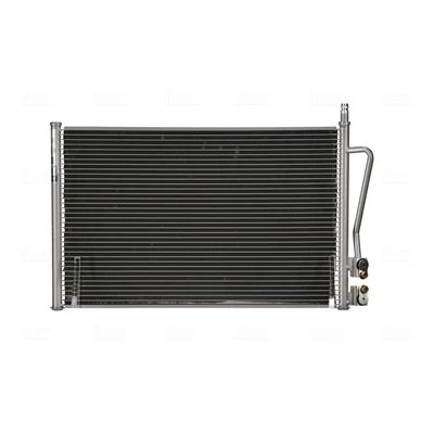 Een airconditioningcondensor is een warmtewisselaar die zich aan de voorkant van het voertuig bevindt, meestal in de buurt van de radiator. De functie ervan is om warmte af te geven aan het koelmiddel door het om te zetten van een gas onder hoge druk naar een vloeistof. Dit proces is essentieel voor het airconditioningsysteem om koude lucht in de cabine te produceren.