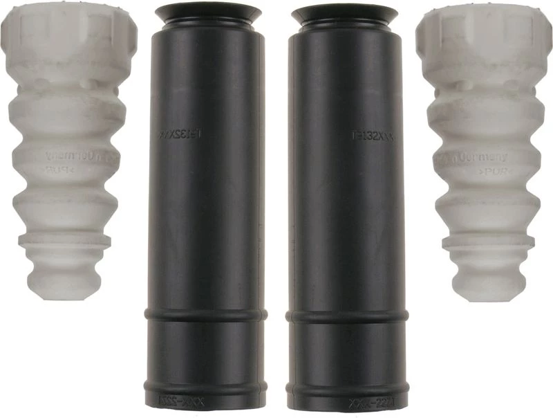 A dust cover kit for a shock absorber is a set of protective components designed to shield the shock absorber rod and seals. It typically includes a protective bellow (boot) and a bump stop, helping to prevent dirt and debris from entering and protecting against impact damage.